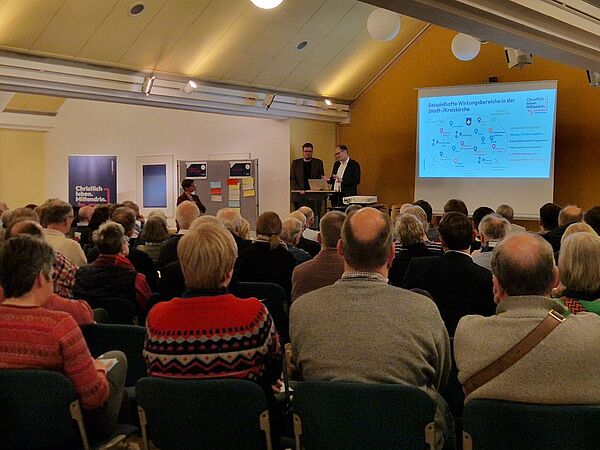 Diesen Punkt griff anschließend Johannes Vutz auf. Denn eine Grundannahme des Transformationsprozesses ist es, dass es für kirchliches Handeln weiterhin gesellschaftlichen Bedarf gibt – jedoch anders als früher. Um den christlichen Glauben als eine Option in einer diversen Gesellschaft anzubieten, müssen neue Wege des Kirche-Seins gefunden werden. Das sei auch angesichts des demografischen Wandels nötig, in dessen Zuge sich die Kirche auf weiter sinkende Mitglieder- und Mitarbeitendenzahlen sowie begrenzte finanzielle Ressourcen einstellen müsse.