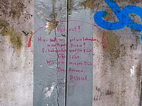 Ein Nachruf auf Bördi stand schon da – mit schwarzem Edding auf die Mauer geschrieben, die in der Klosterstraße vor dem Parkhauseingang verläuft, gleich neben dem Discounter: „Hier saß, so gut wie lebenslang, mein Freund Birdie! (…) Wir vermissen dich!“