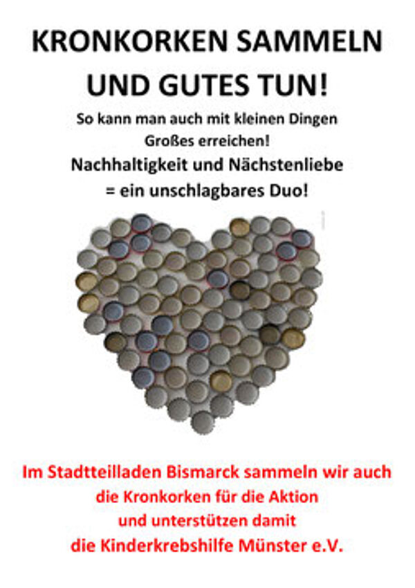 Flasche auf und Deckel in die Sammelbox - so wünschen sich das der Quartiersladen in Schalke sowie der Stadtteilladen in Bismarck. Ihre Sammelbox können Sie dann im Quartiersladen (bis 30.9.) oder im Stadtteilladen (jederzeit) abgeben. Wenig Aufwand, viel Effekt: Durch die Kronkorkenspenden unterstützen Sie die deutsche Krebshilfe sowie die Kinderkrebshilfe Münster e.V.