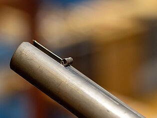 Welche Faktoren den Klang beeinflussen, zeigt Ingo Bubendorfer an einer Labialpfeife. Hier tritt die Luft , die von unten in die Pfeife gepresst wird, durch die Kernspalte aus, einen kleinen Schlitz, den man nur bei genauem Hinsehen erkennt. Der Luftstrom trifft auf die Oberkante und erzeugt einen Ton. Durch Verengen oder Weiten der Kernspalte wird der Luftstrom geleitet und der Ton beeinflusst. Oben an der Pfeife ist ein Stück Metall abgerollt: auch diese Stimmrolle verändert je nach Positon den Pfeifenton. Nicht zuletzt lassen sich der innere Kern der Pfeife verschieben und ihre obere und untere Öffnung verengen oder weiten.