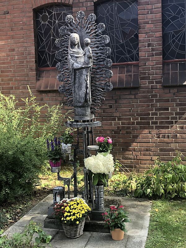 Strahlenkranz-Madonna vor der Herz-Jesu Kirche in Hüllen